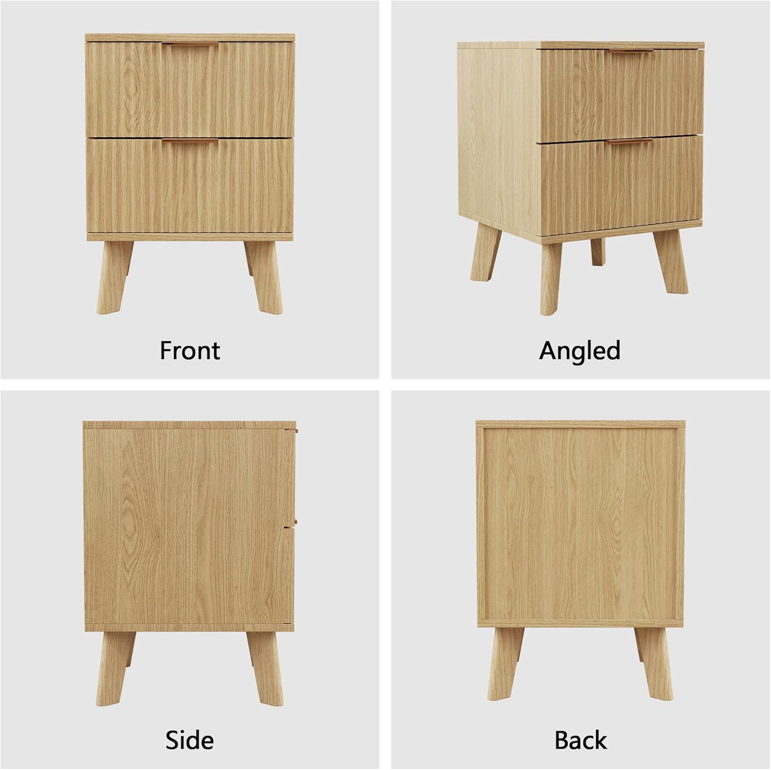 - STYLISH DESIGN: The wood 2 drawers nightstand is fabricated through a special technology, the fluted waveform panel with sleek curved profile design is unique and elegant. Complete with aluminum handles, the smooth metal guide rail allows the drawer to be pulled out and closed easily and silently.The simple and modish design of the bedside furniture matches perfectly with any furnishing style