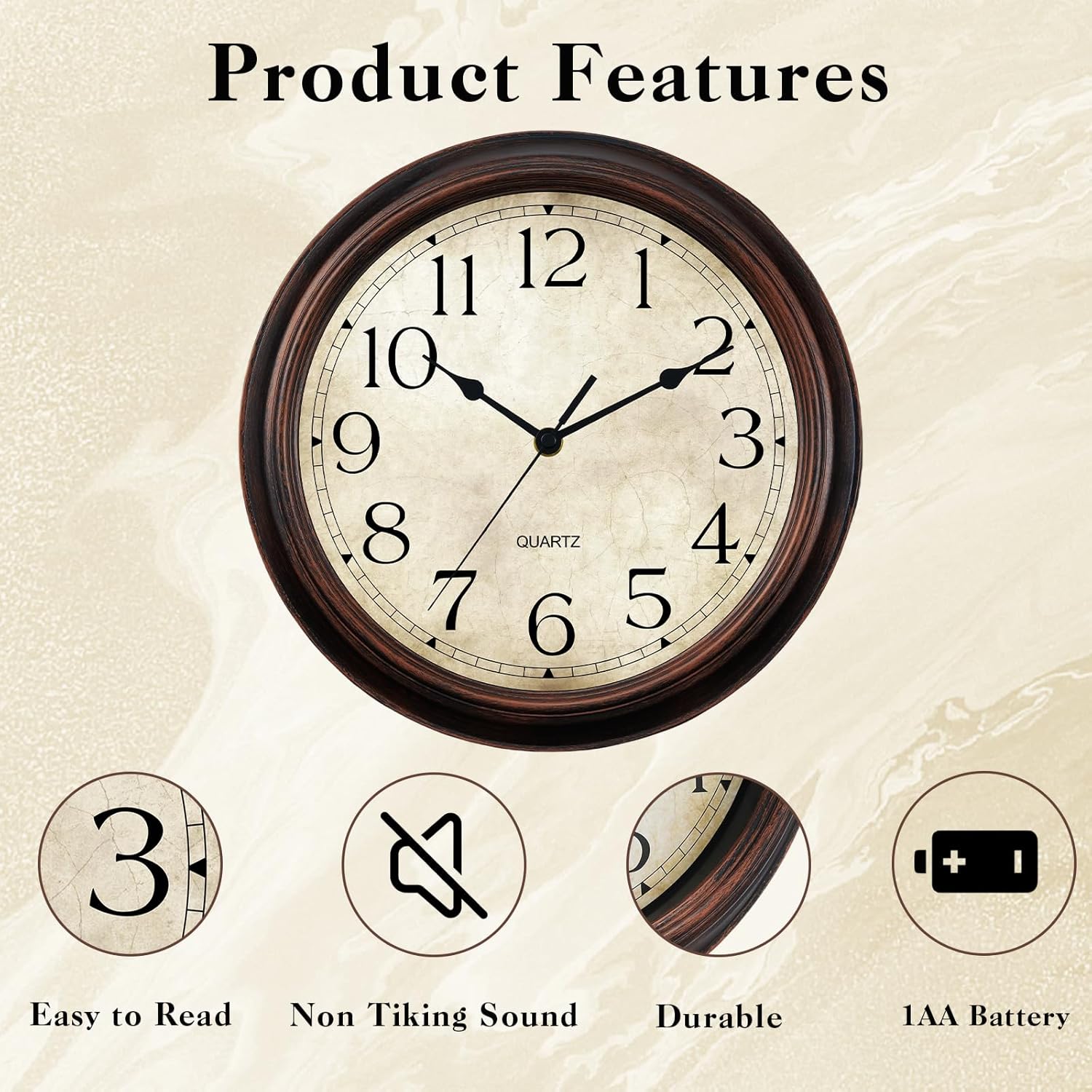 - [SUPER SILENT] - Equipped with high quality sweeping movement-non ticking/accurate timekeeping. Also it will give you absolutely silent environment all the day, especially at nights -Just like the baby’s breath, nothing noise.