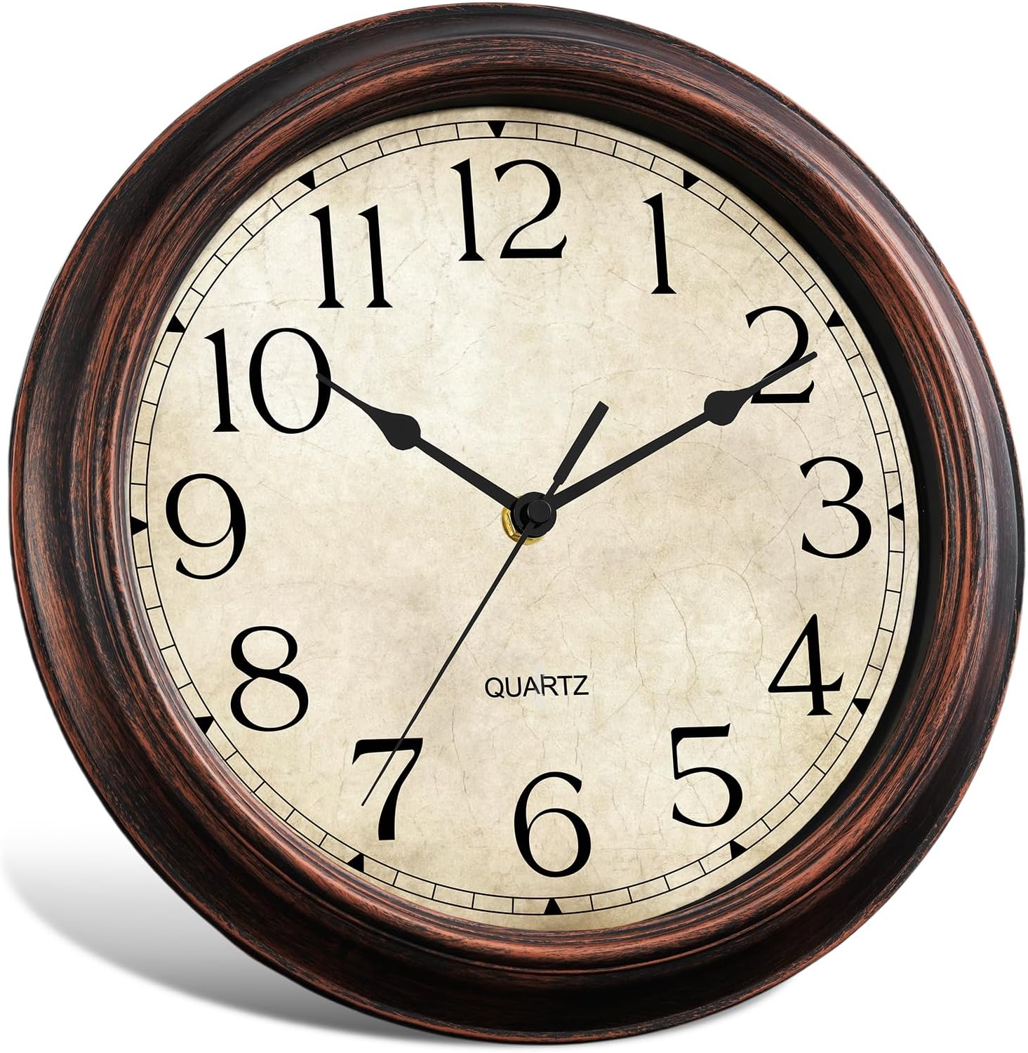 - [EASY TO READ] - Black hour, minute, seconds hands, plastic special copper case, vintage/retro design, large black numbers against, easy viewing and pleasing to the eye, the glass will keeps dust away from dial and give you a beautiful clocks.