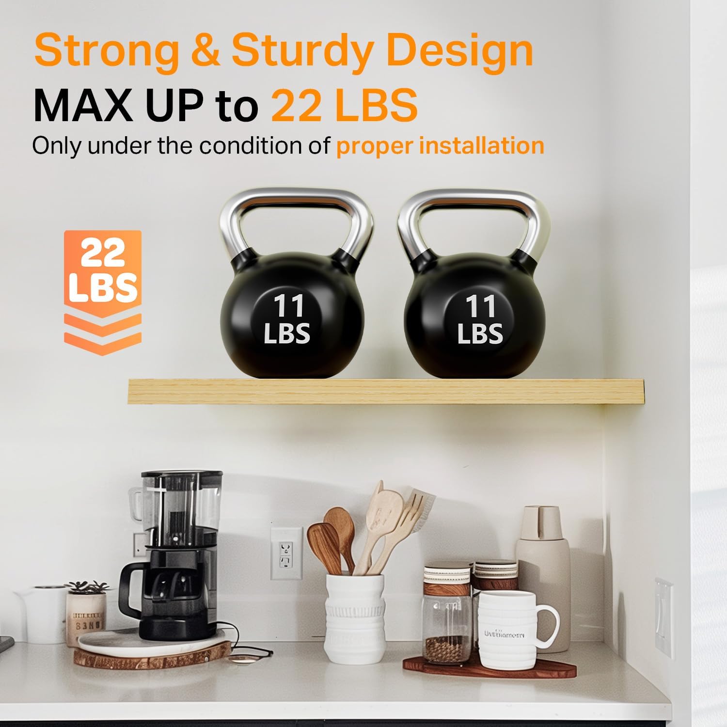 - ๐๐ญ๐ซ๐จ๐ง๐ ๐๐จ๐๐ ๐๐๐ฉ๐๐๐ข๐ญ๐ฒ โ Made from ๐๐ฎ๐ซ๐๐๐ฅ๐ ๐๐ง๐ ๐ข๐ง๐๐๐ซ๐๐ ๐ฐ๐จ๐จ๐ and reinforced with sturdy brackets, each shelf ๐ฌ๐ฎ๐ฉ๐ฉ๐จ๐ซ๐ญ๐ฌ ๐ฎ๐ฉ ๐ญ๐จ ๐๐ ๐ฅ๐๐ฌ, making them ideal for books, plants, toiletries, or decor