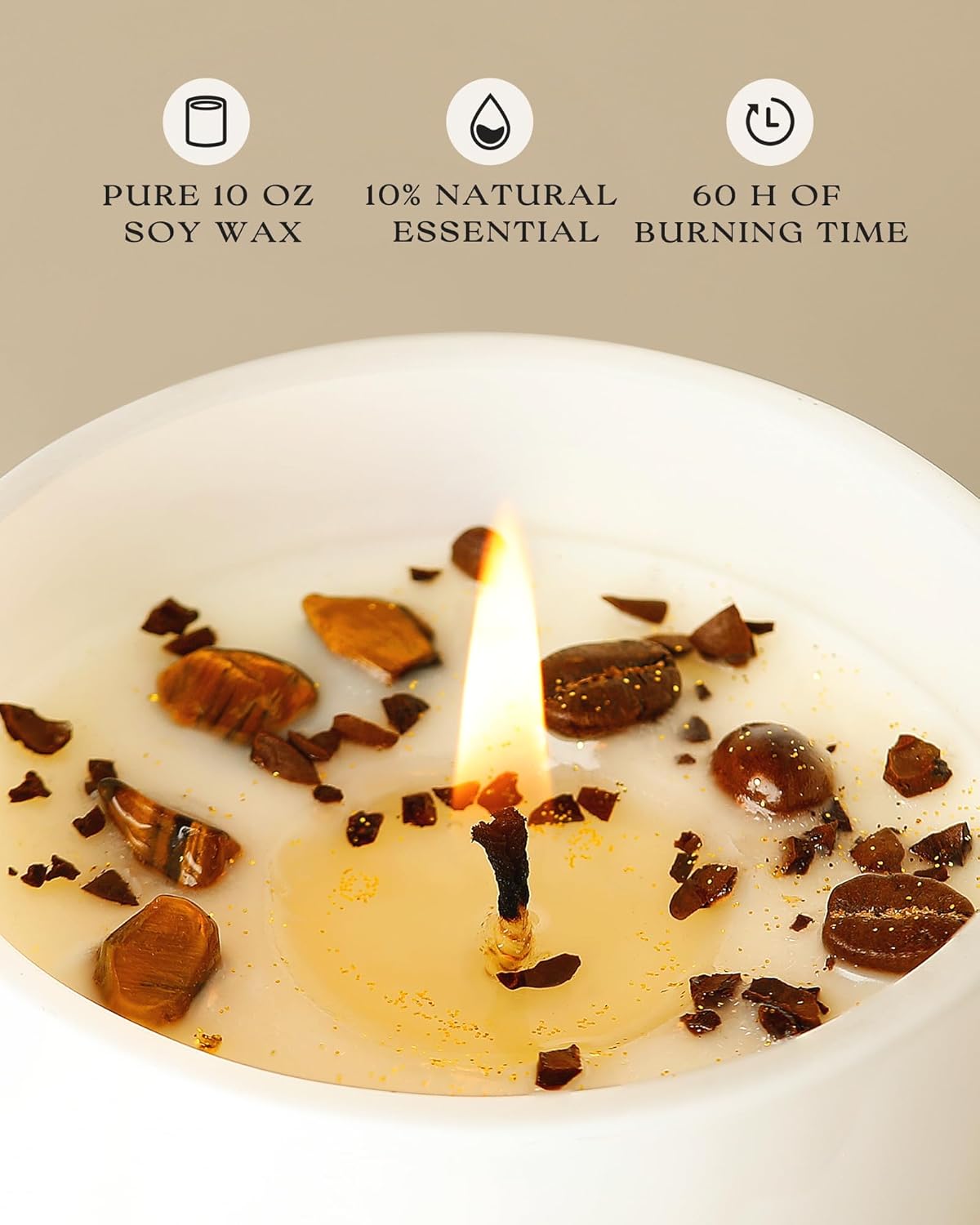 AOOVOO Macchiato Coffee Scented Candles for Women - Aromatherapy Candle with Crystals Inside, 10oz, 60H Burning Time, Soy Candles for Home Scented, Birthday Gifts Candle for Women Mom