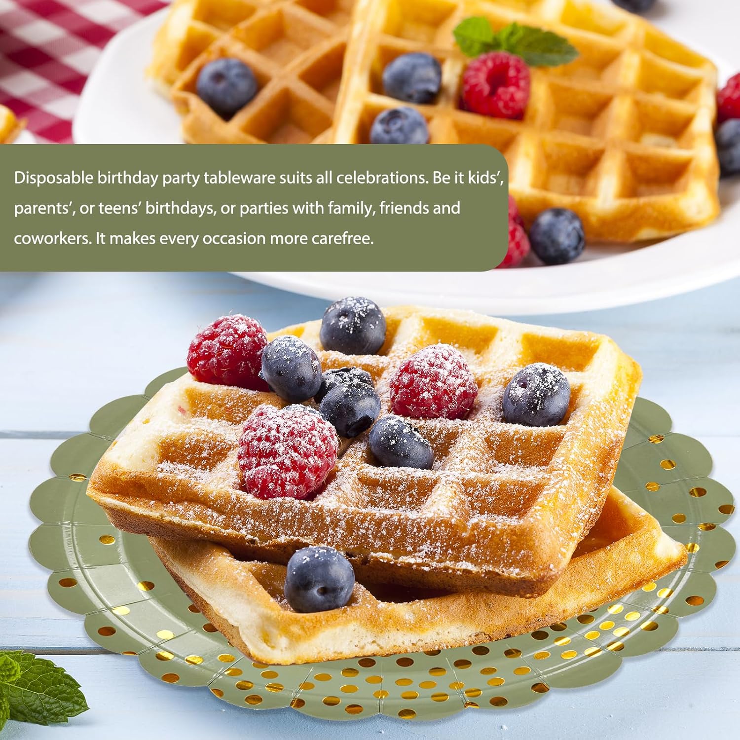 - 【SAGE GREEN PARTY DECORATIONS】: Sage green party plates set comes with 50pcs sage green paper plates, serve up to 50 guests, specifically for dessert plates size: 18cm/7inch, gold foil paper plates are exquisite and generous, the perfect party addition you've been looking for a guaranteed hit!