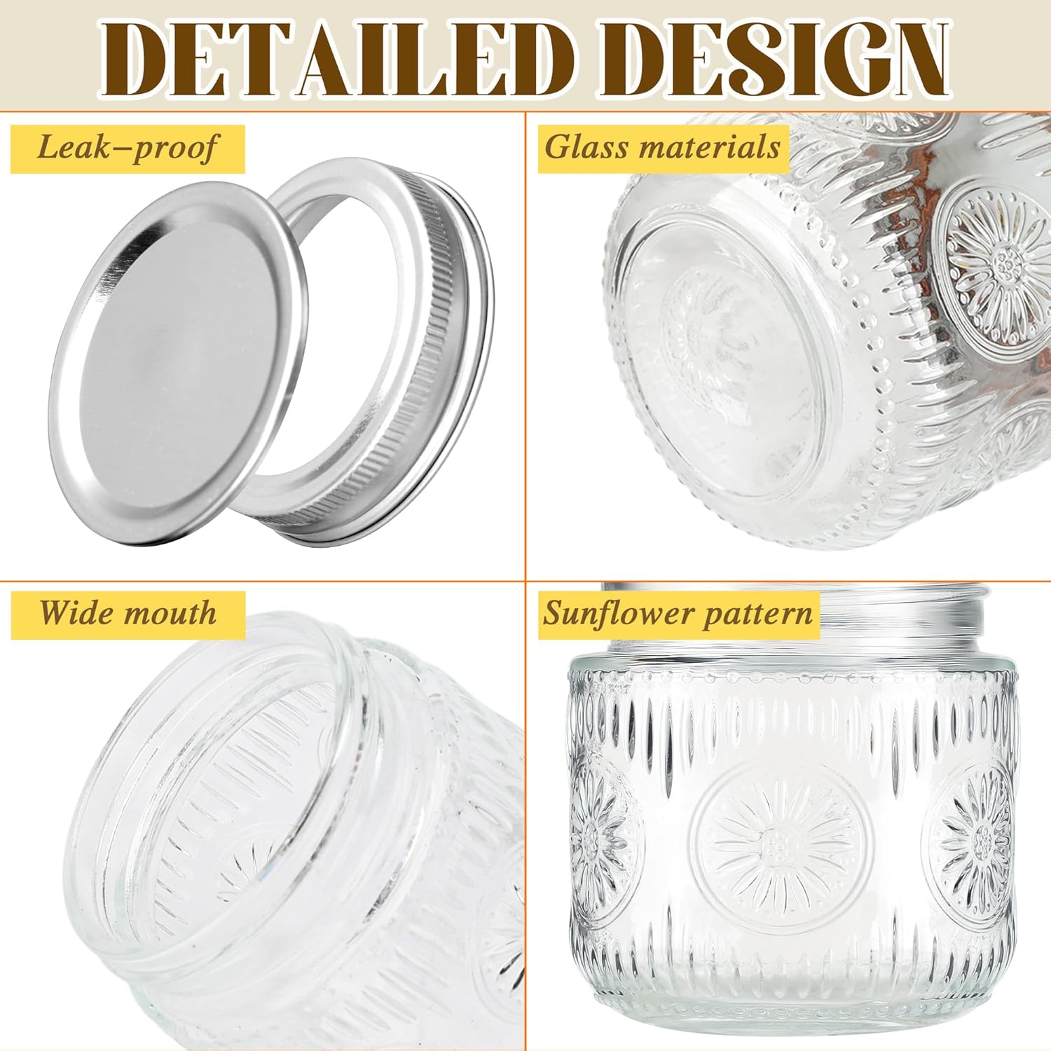 - APPROPRIATE CAPACITY: Each 8oz glass jars perfect for canning jams, jellies, honey, or storing spices and herbs. Also great for DIY crafts, wedding favors, and home décor.