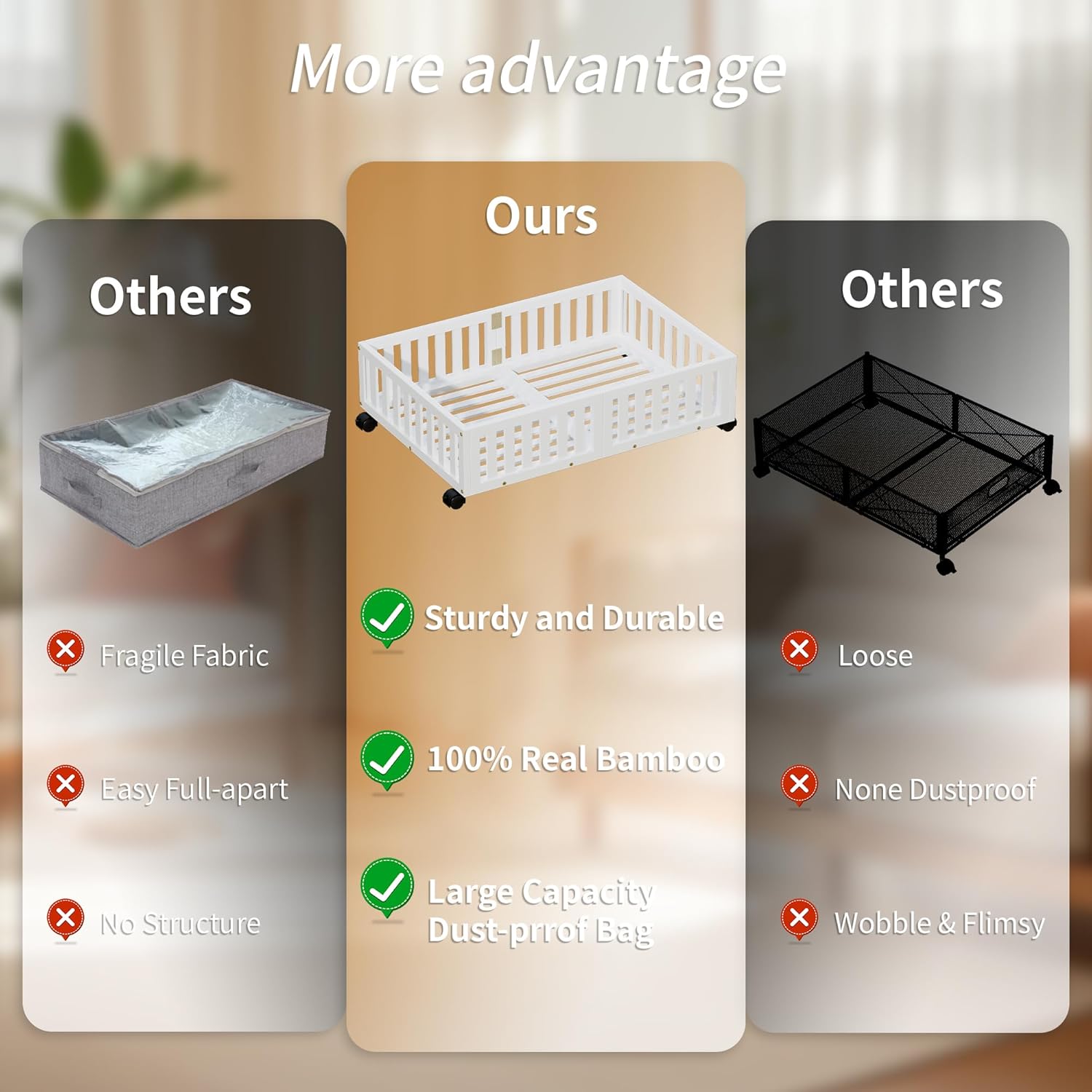 - Easy Assembly & Fit Most Beds: Simple assembly required, and the compact design fits under most standard beds. Transform the wasted space under your bed into a functional storage area with these bamboo under bed storage units.