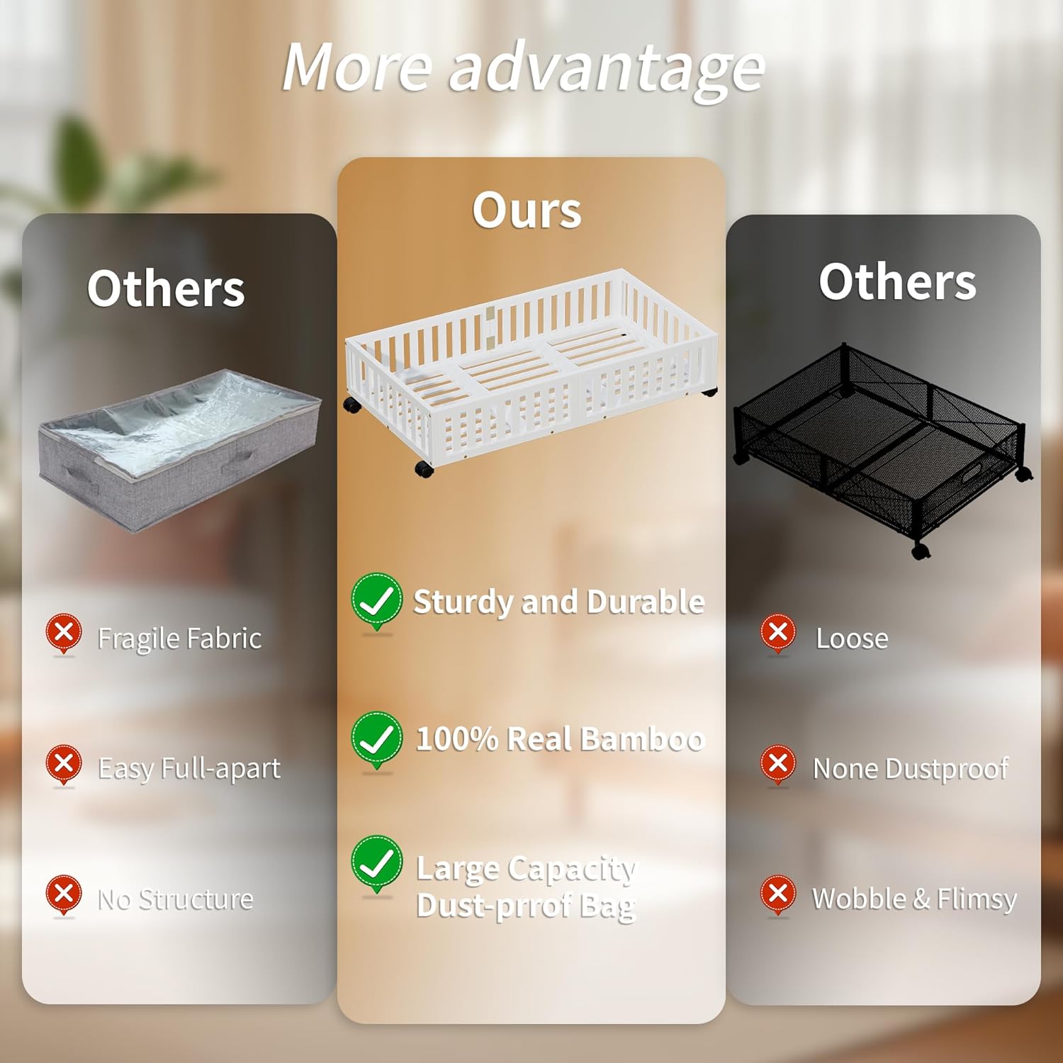 - Easy Assembly & Fit Most Beds: Simple assembly required, and the compact design fits under most standard beds. Transform the wasted space under your bed into a functional storage area with these bamboo under bed storage units.