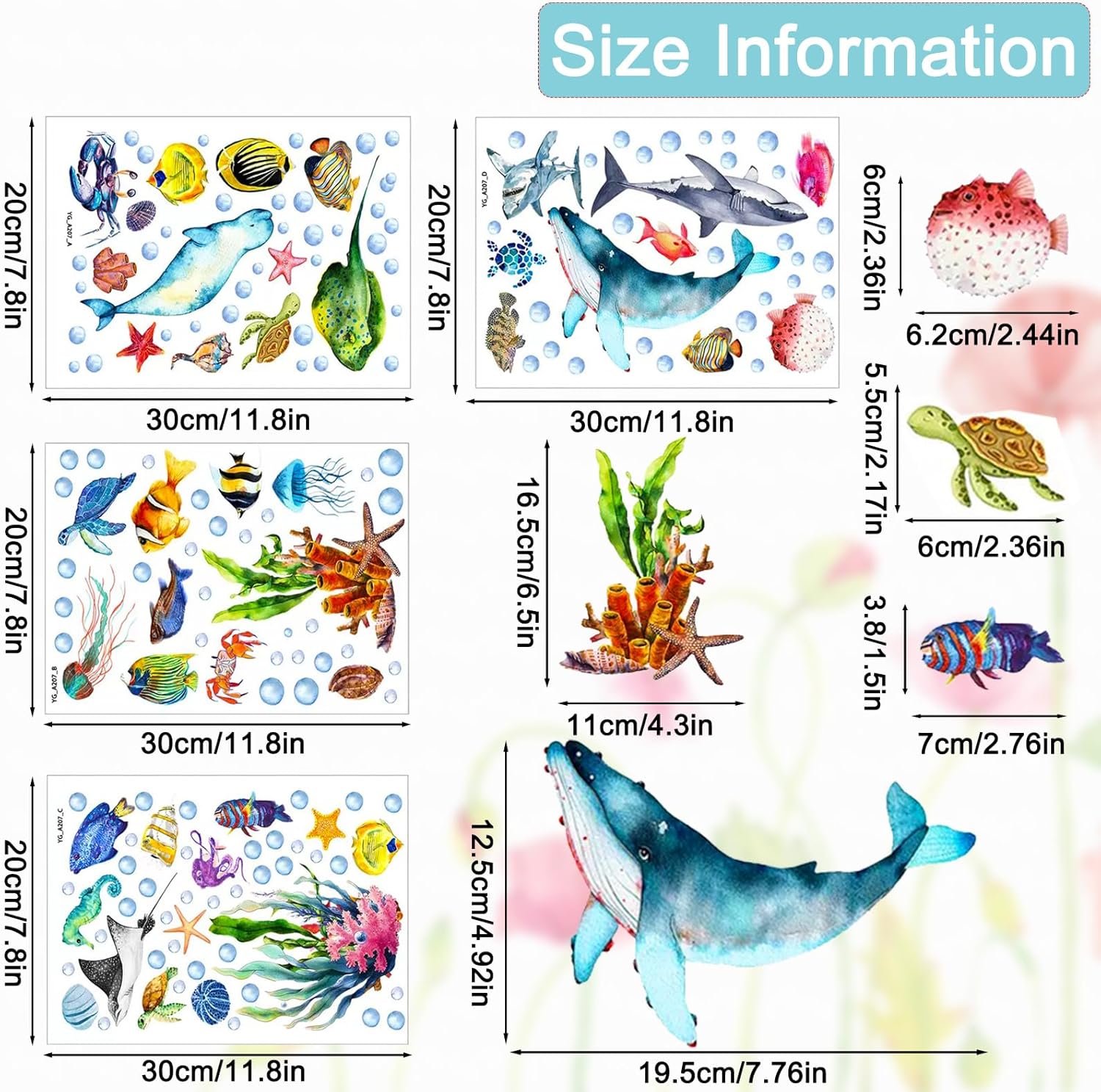 - Complete Ocean Adventure Set: Includes 3 sheets glowing ocean fish wall decals(20x30cm each) featuring fish, dolphins, sea turtles, jellyfish, starfish, seaweed and coral reefs, etc. Perfect for transforming kids' rooms into a magical underwater world-glows blue at night!