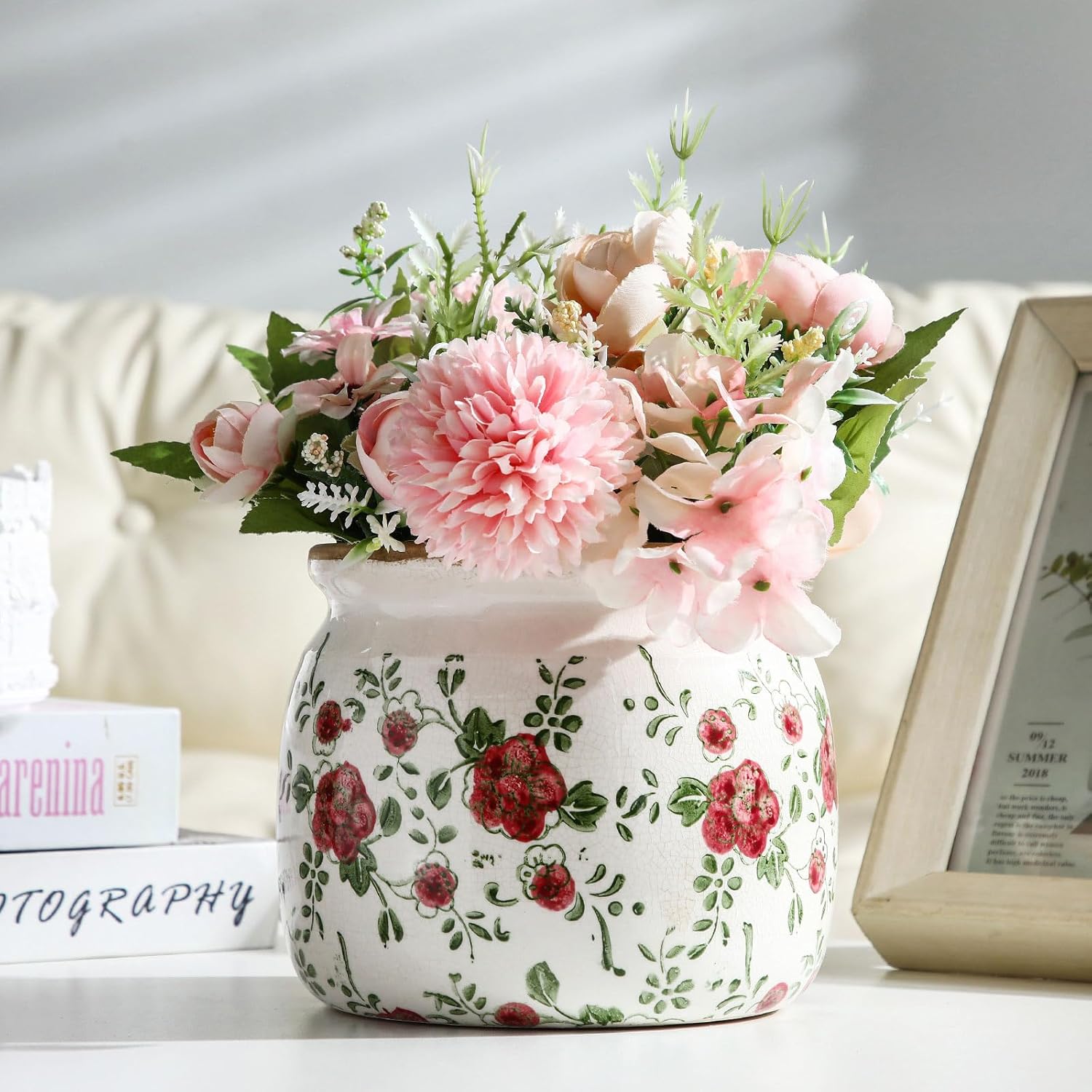 1 Pcs Vintage Planter Large Ceramic Plants Pot Red Plum Crack Cottage Scroll Vase Flower Vase Pot Indoor Plants Home Kitchen Decor Farmhouse Antique Decorative Gift