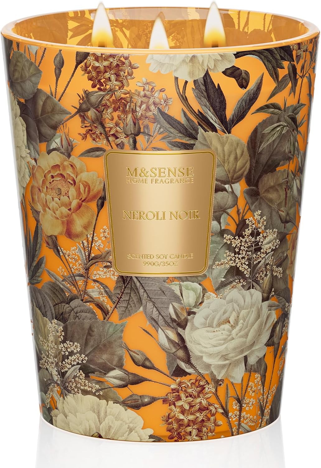 M&SENSE Neroli Noir Scented Candle 3 Wick 35oz 150H Long Lasting, Natural Soy Candles Stress Relief Calm Home Fragrance Housewarming Gifts