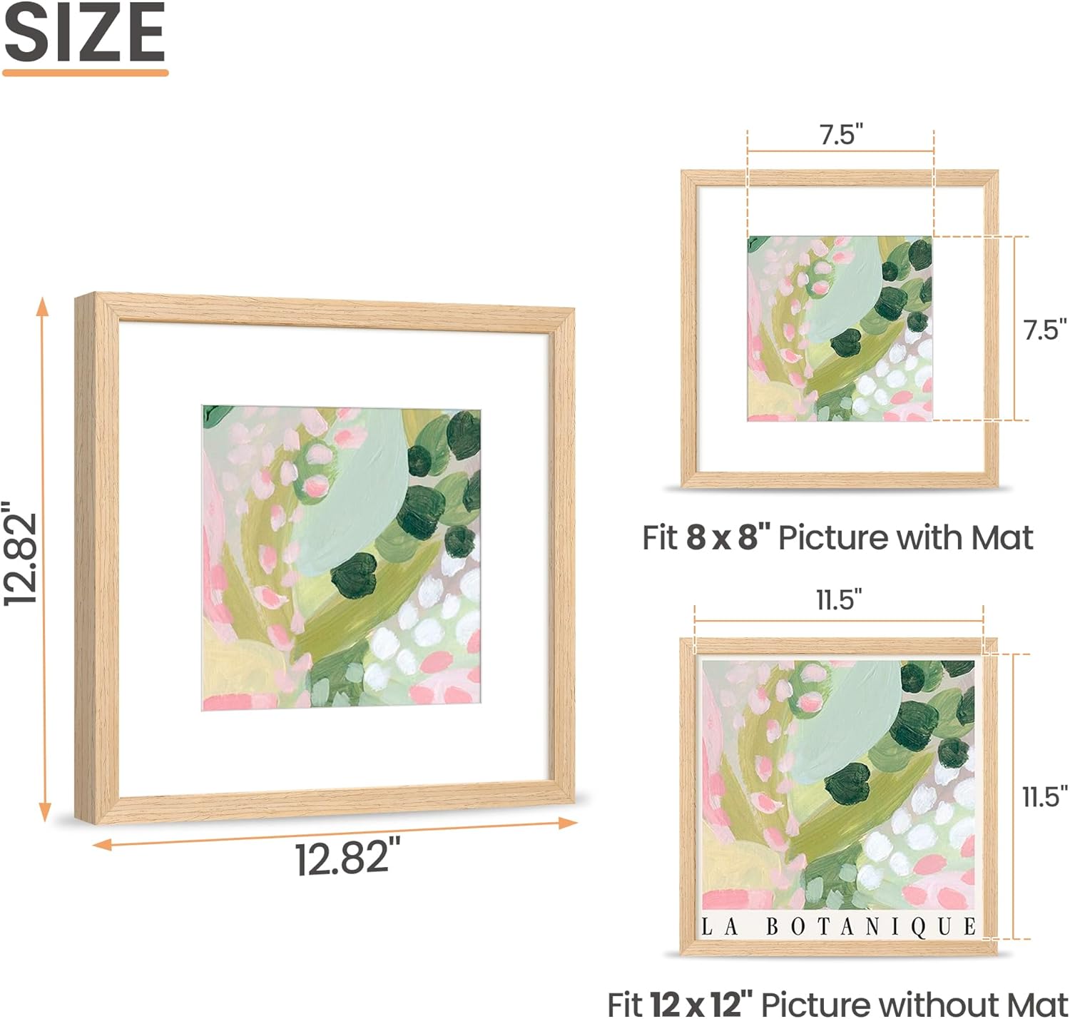 upsimples 12x12 Frame, Natural Solid Wooden Picture Frames, Display 8x8 with Mat or 12 x 12 Without Mat, Wall or Tabletop, 1 Pack, Natural