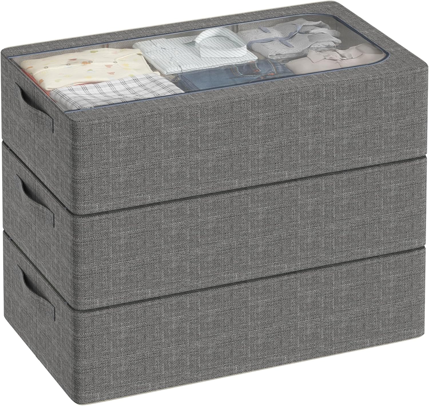 - EE-THROUGH DESIGN - UnderBed Storage Boxes Features a PVC top window + side ID panel for instant visibility of stored items without opening the box.