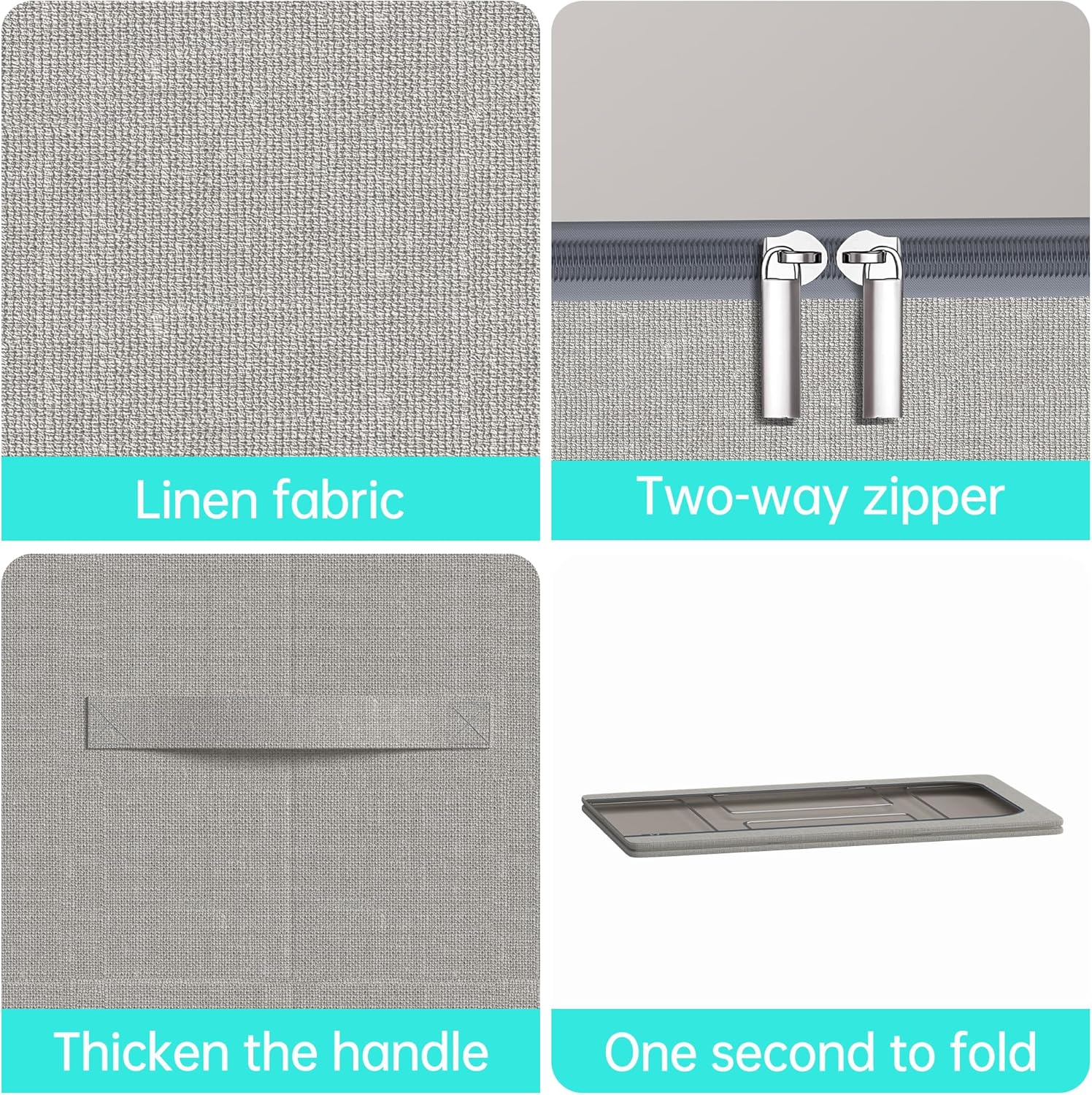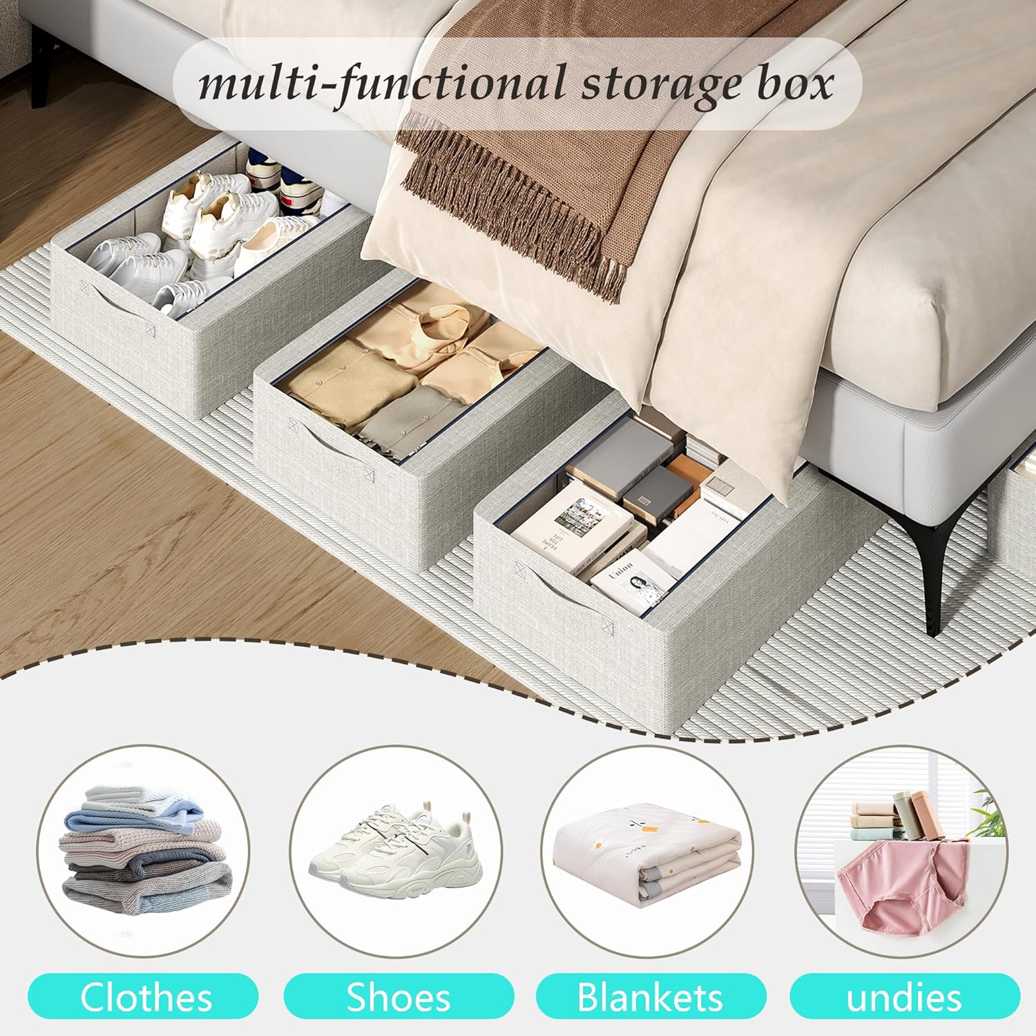 3PCS Under Bed Storage Bins with Metal Frame, Linen Fabric Frame Storage Box Clothes Organizer Bins, Underbed Container with Clear Window (Light Grey, 23.6 x 13 x 6IN)