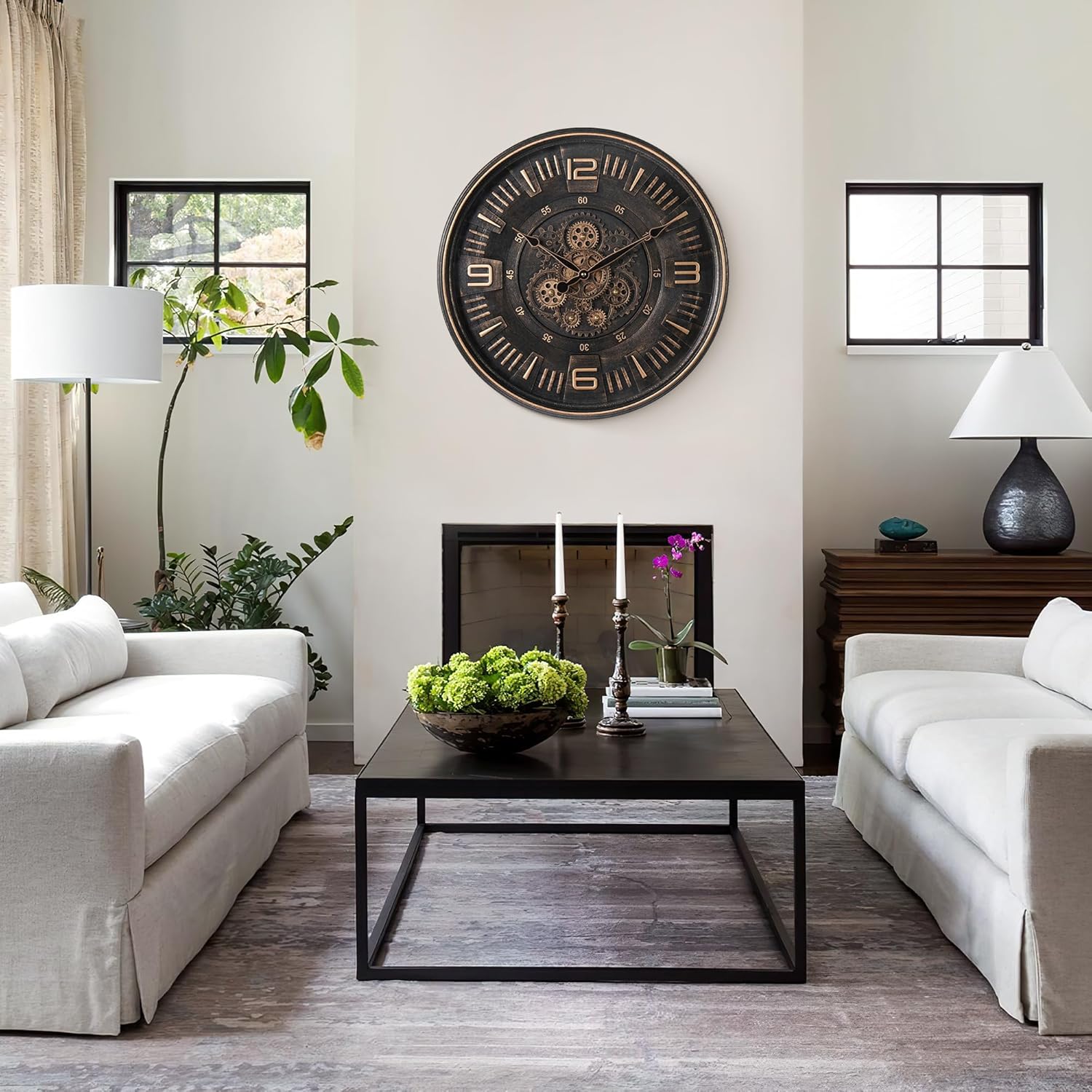 - Statement Vintage Industrial Decor: Elevate any space with this large-scale, antique-finished metal clock. Its unique blend of vintage industrial charm and steampunk flair seamlessly complements diverse styles: Farmhouse, Mid-Century Modern, French Country, Rustic, Traditional, or Coastal chic. Perfect for living rooms, offices, dens, kitchens, and covered patios.