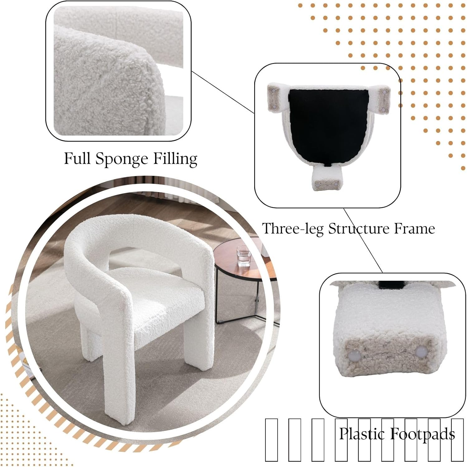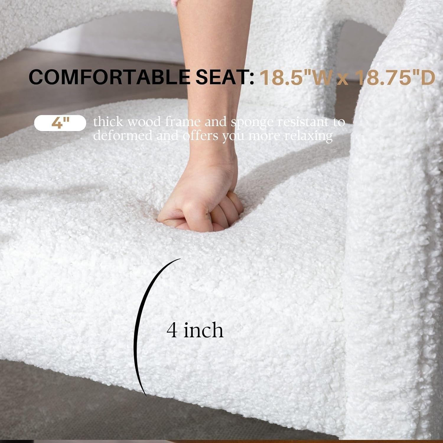 White Boucle Dining Chairs Set of 2, Modern Barrel Dining Room Chairs Upholstered Faux Fur Accent Chair with Arms and Round Back for Living Room Kitchen Armchair No Assembly Needed