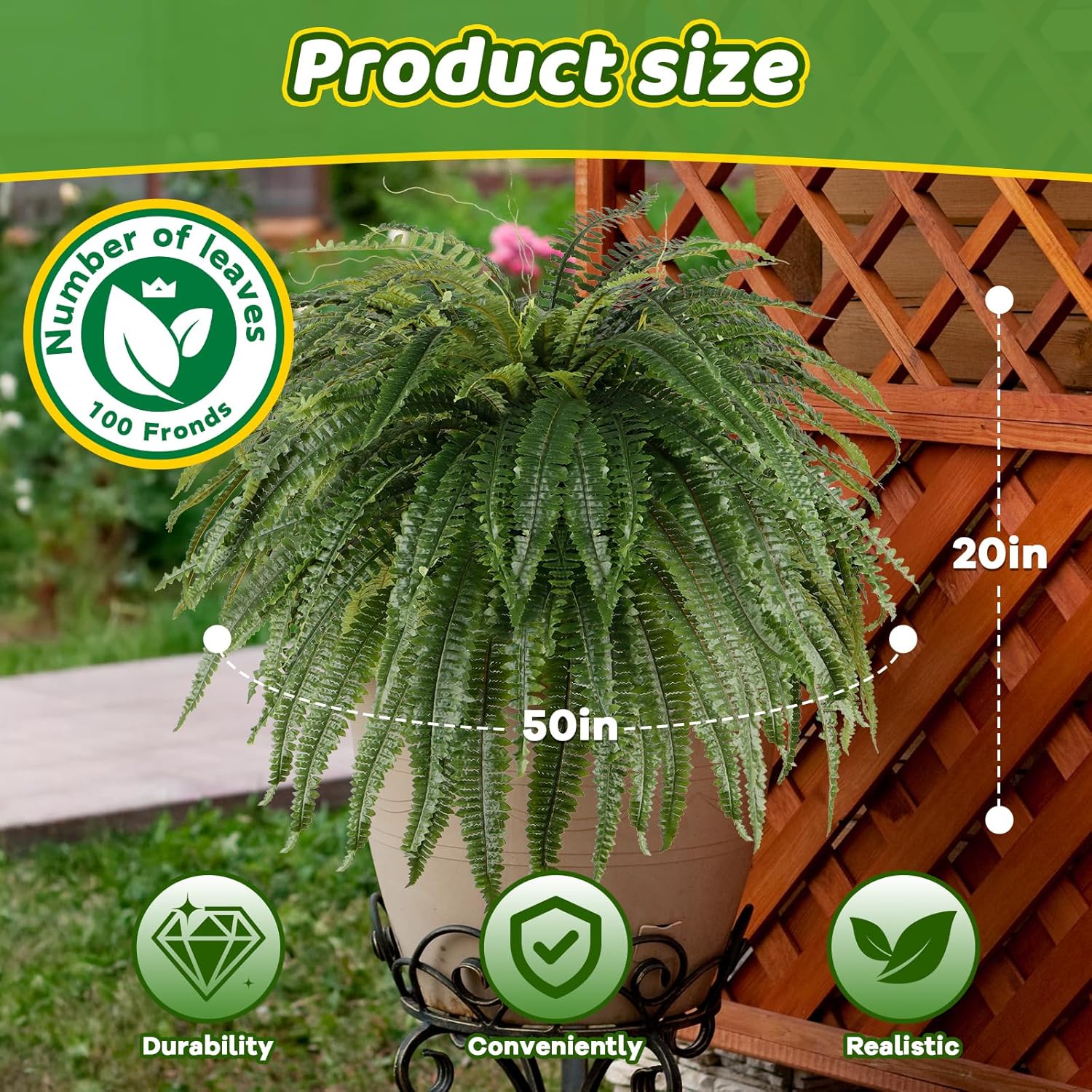 - đŽăVersatile Indoor/Outdoor DecorăPerfect for living rooms, gardens, porches, and planters. This artificial boston ferns plant brings lasting greenery to any space without maintenance concerns.
