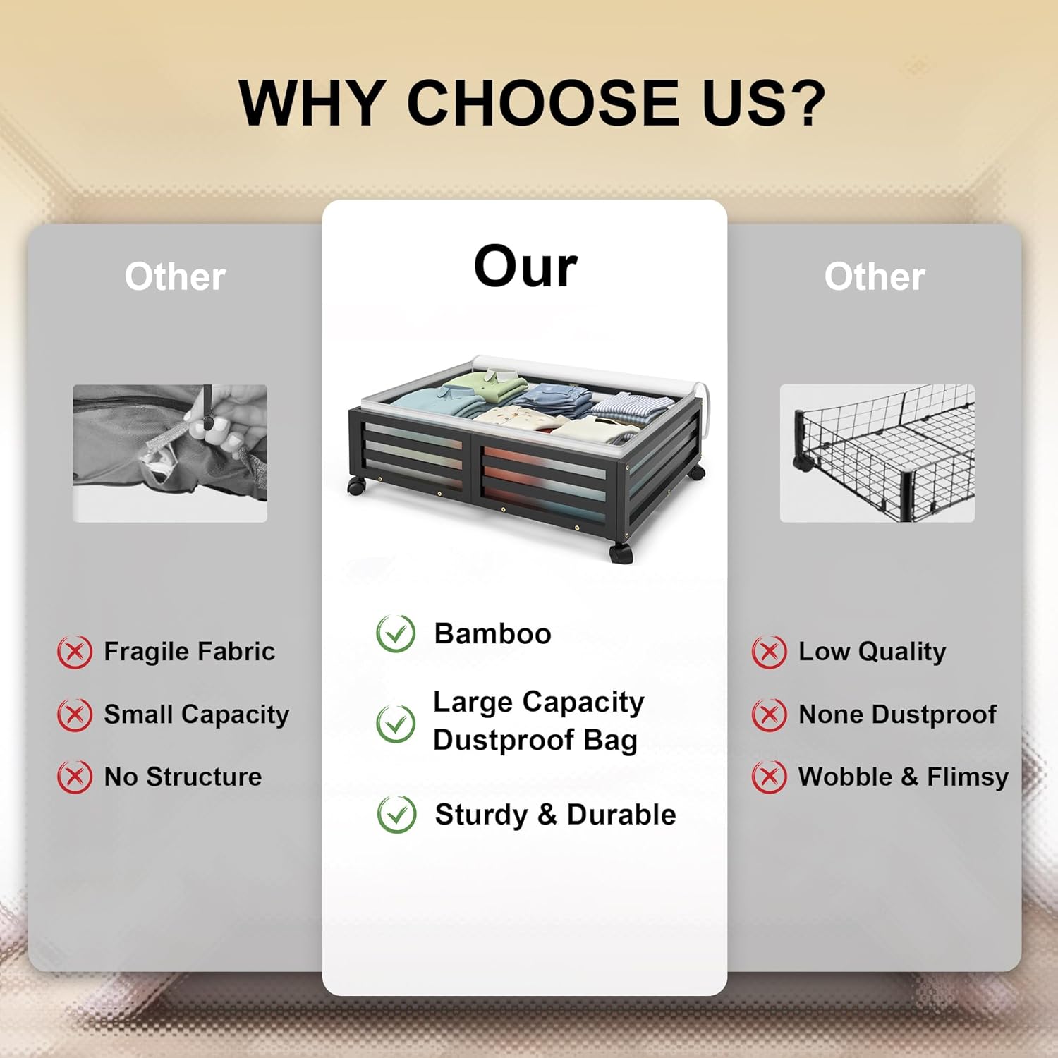 - 【Sturdy & Durable】Made from 100% natural bamboo; supports up to 120 lbs; includes a dust-proof bag for seasonal clothing and essentials